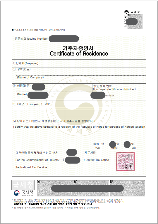 싱가포르 관련 세금 정보 제출 방법 - 거주자증명서 발급