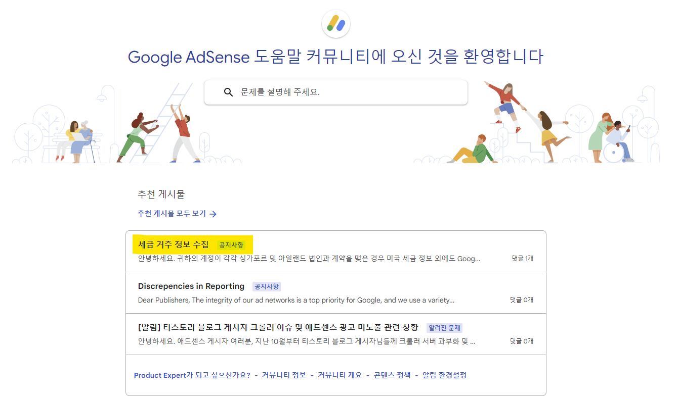 참고로 현재 Google Adsense 커뮤니티에 올라온 공지를 보여드리고 글을 마치도록 하겠습니다.