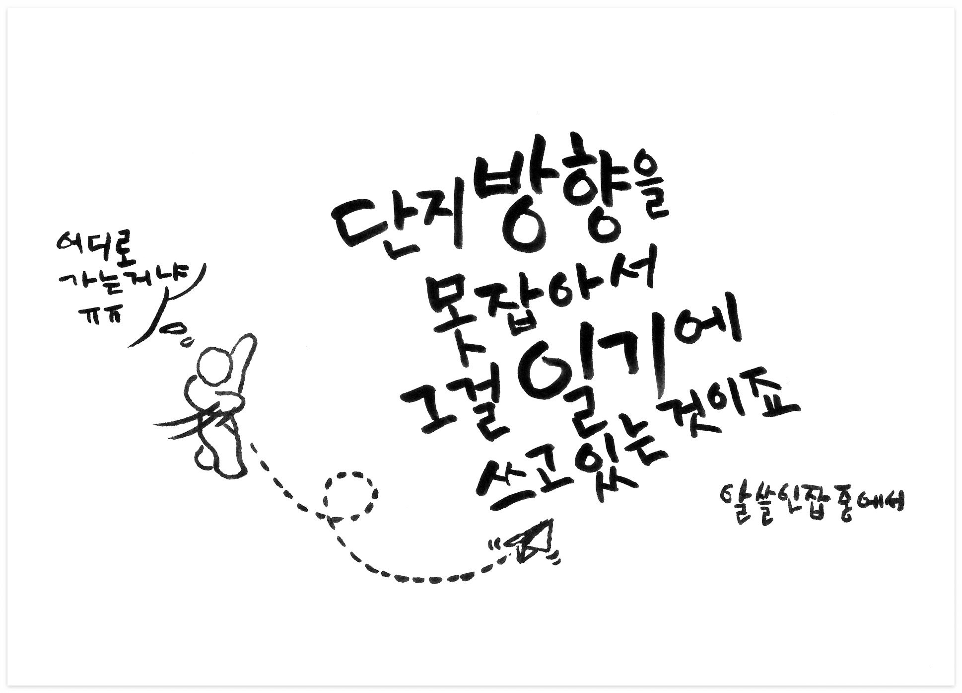 이번 본 영상에 나온 문구를 이용해서 캘리그라피를 흉내 내보았습니다.