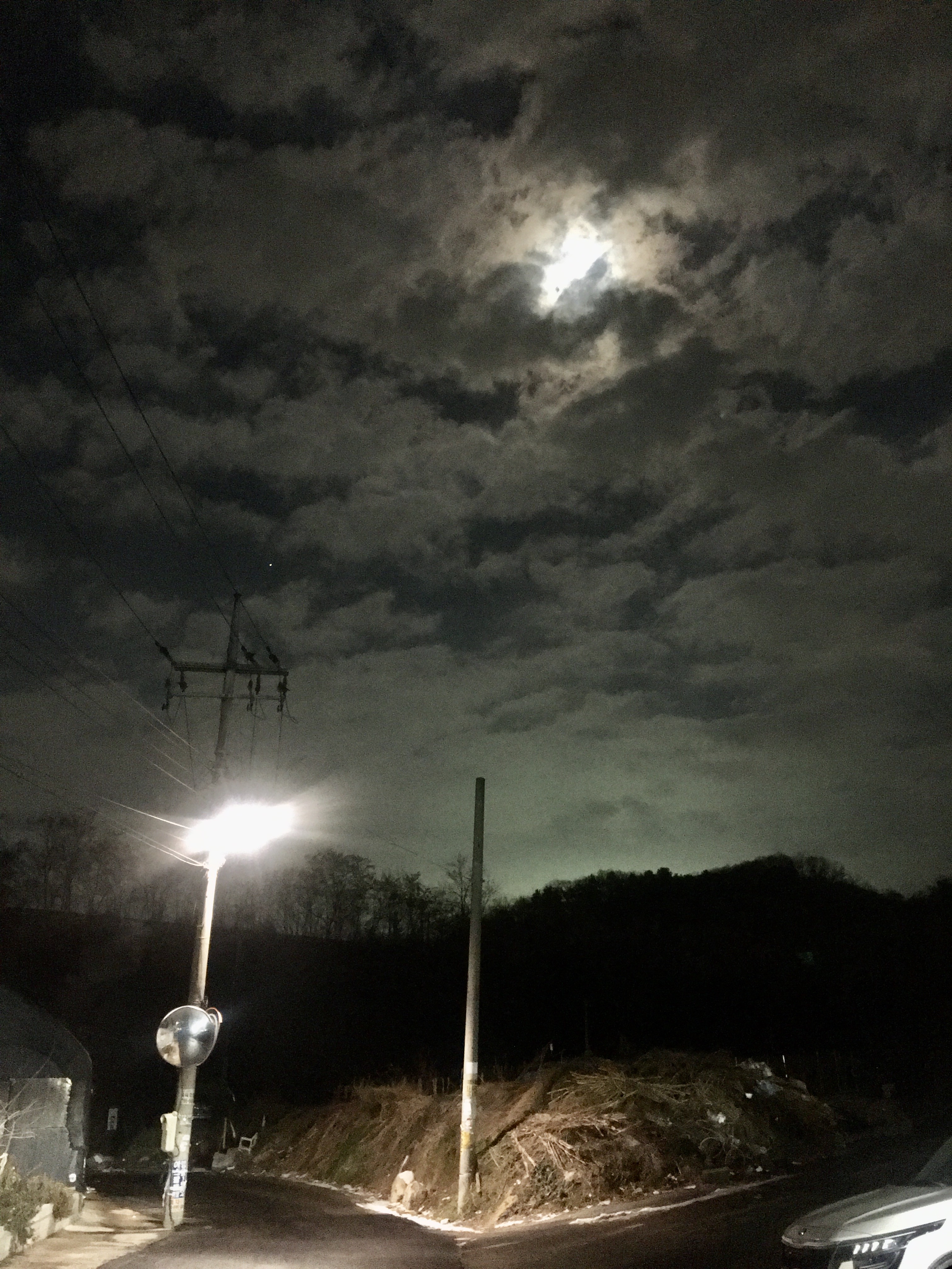 정말이지 몽환적인 모습에 이 광경을 사진으로 담고 싶은데 제가 들고 다니는 폰은 아이폰 6s 그래서 야간 사진은 완전 꽝 더구나 삼각대가 있는 것도 아니고 손으로 찍어야 하니 어려운 상황이기는 하지만 그래도 사진을 담고 당시 다른 SNS에 올리기도 하였는데, 어제저녁에는 달님이 도와주셔서 조금 더 확실한 사진을 담을 수 있었습니다.