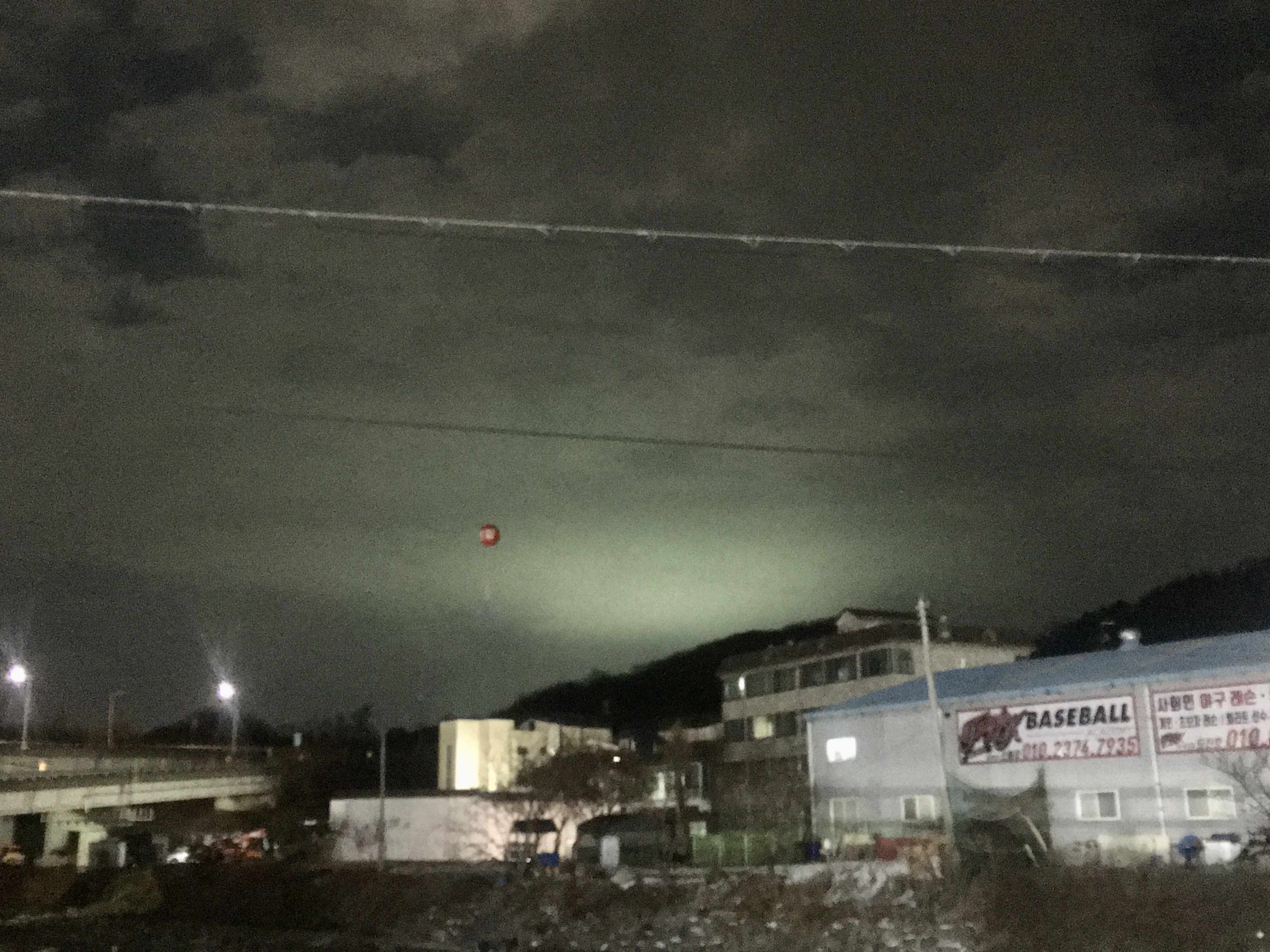 제가 퇴근하면서 자주 멈추는 곳 중에 한 곳인데, 저 방향으로는 건축물이 하나도 없어서 하늘 보기가 좋고, UFO 착륙 기지에서 뿜어내는 불빛은 산과 하늘의 경계 때문인지 정말 확실히 더 잘 보이는 곳이기도 합니다.