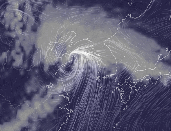 장마 때가 되면 나타나는 전형적인 기후대 전선의 모양이 있습니다.