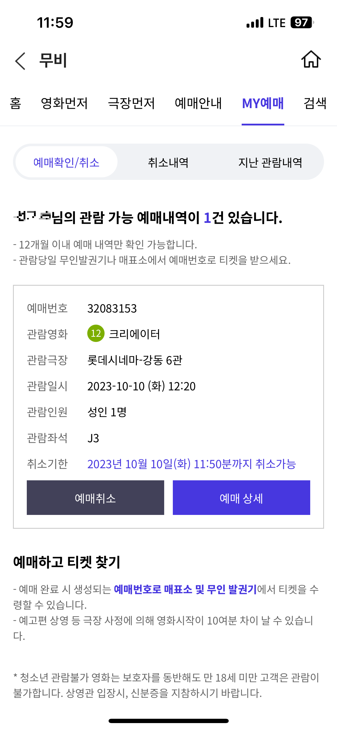 위 사진은 T멤버십, 카카오톡, 롯데시네마 각각 화면에서 제가 예약한 내역을 확인한 것인데요, 이렇게 영화를 볼 수 있는데도 이런 혜택을 사용하지 않았던 시간이 이날로 어느 정도 해소가 되었네요, 다음에는 최대한 2개월에 한 번은 영화를 보는 것으로 해야 하지 않을까 생각해 봅니다.
