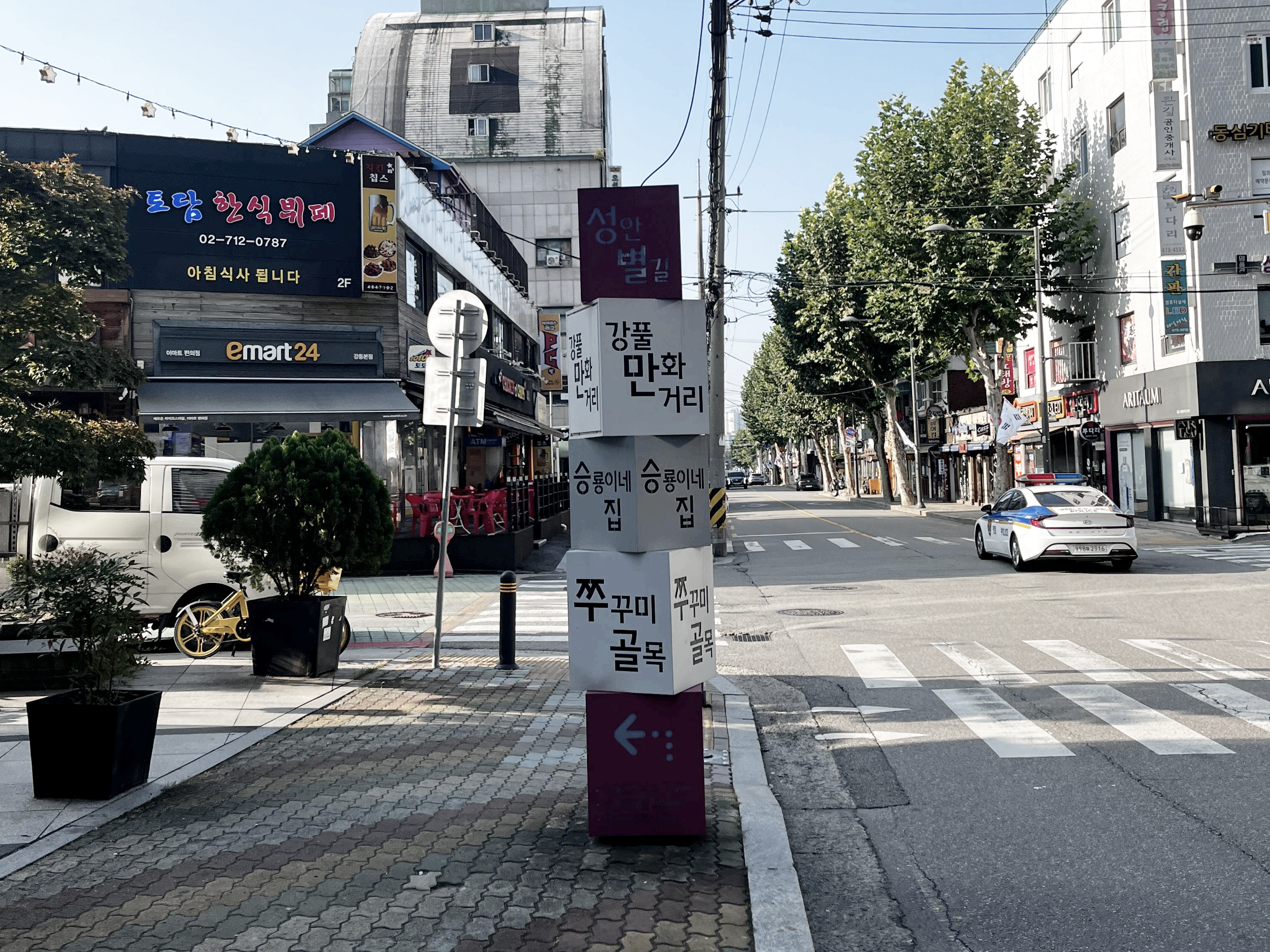 암튼 버스로만 이동하는 저의 습관과 약속에는 늦으면 절대 안 돼 라는 생각으로 약속시간까지 이동 시간을 계산해서 엇 비슷하게 이동하는 보통 사람들과 달리 적어도 한 시간 이상 먼저 도착할 수 있게 이동하는 방법으로 이동하다 보니 이 날도 약속시각은 오전 10시, 도착 시각은 8시 45분!! 뭐 이런 거죠 ^^, 그래서 주위를 돌아보니 아주 놀란 사실 도착 정류소가 '성내시장'이었고 앞을 보니 눈에 들어온 기둥하나에 '강풀 만화 거리'라고 적혀 있네요, 약속이고 뭐고 한동안 강풀의 구독자로 살아왔던 추억에 젖어 동네를 돌아다녀 볼까 도 했지만 그러면 안 되죠?