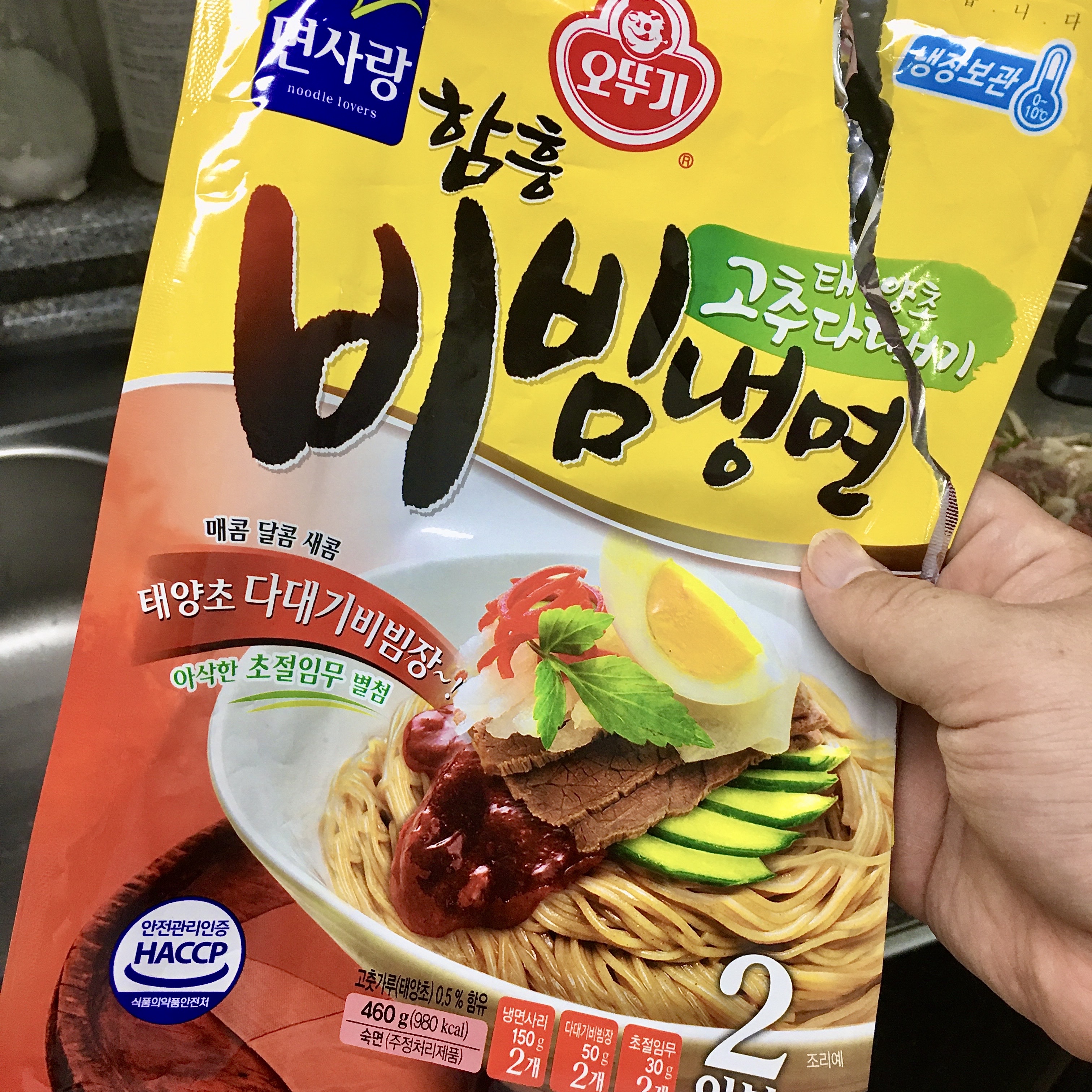 그러고 보니 대부분 아니 마트에서 판매되고 있는 모든 냉면의 종류는 2인분이 기본이더라고요, 1인분 짜리가 있었으면 그 제품을 구매했을 텐데 암튼 다 2인분이었고 당연하지만 오뚝이 면사랑 함흥비빔냉면도 2인분이었습니다.