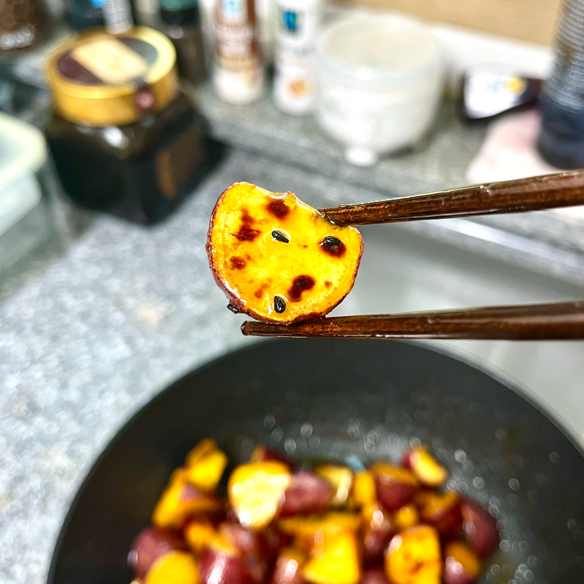 - 녹은 물엿에 구운 고구마를 넣고 잘 섞어주고 깨를 뿌리면 끝 ^^
