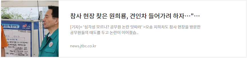 당장 견인차가 와서 사고 현장으로 들어가야 하는 상황인데도 기자들 몰린다고 멋있는 장면을 찍어야 하기게 견인차 들여보내고 기자회견을 더해도 될 것을 자기가 하는 기자회견은 꼭 짧게라도 해야겠다는 생각은 도대체 ㅠㅠ, 정말 저런 사람들이 정치를 하고 있다는 것이 이 나라의 요직을 차지하고 있다는 것이 답답하기만 합니다.