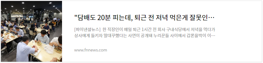 갑론을박이 일어나고 있는 온라인 커뮤니티의 댓글 중에 '점심시간을 사용하지 않으면 1시간 일찍 퇴근하냐?'라는 말 정말 와닿는 말입니다.