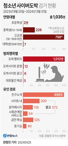 (서울=연합뉴스) 윤보람 기자 = 경찰청 국가수사본부(국수본)는 작년 9월 25일부터 올해 3월 31일까지 6개월간 '청소년 대상 사이버도박 특...
