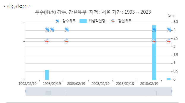 그리고 우수의 이름 답지 않고 강수량이 너무 저조해 보입니다.