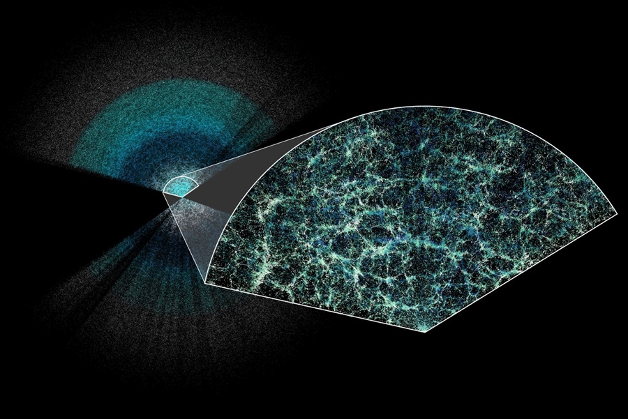 최근 DESI 연구팀은 약 1500만 개의 은하와 퀘이사(중심부에 블랙홀이 있는 밝은 천체)를 포함하는 3년간의 관측 데이터를 분석했습니다.