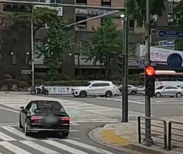 위 이미지에서도 나오는 내용이지만 검은색 승용차가 우회전 정시 신호등에서 지나가고 있으므로 현재 제도로 위반을 한 것입니다.