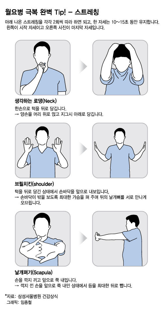 황금 같은 주말, 꿀맛 같은 휴식 뒤로 어슬렁거리는 불청객이 있다. 바로 '월요병'이다. 월요일만 되면 비몽사몽 일하거나, 온몸이 쑤시고 뻐근해 업무에 집중하기 힘들어하는 직장인이 적잖다.