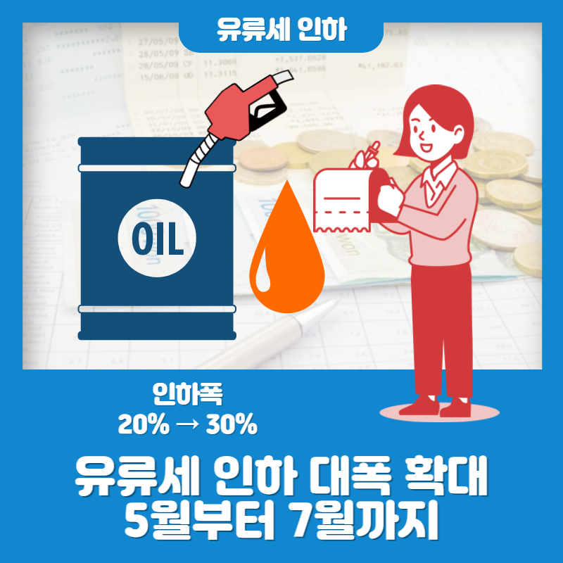 ▶ 5월 부터 7월까지 유류세 인하 폭을 20%에서 30%로 확대합니다.