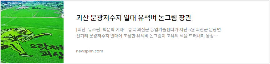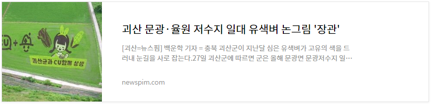 유색벼 논그림은 괴산군의 특허 기술이며 지역 농특산물과 축제 홍보 등 다양한 분야에서 활용할 수 있기에 타 지자체로부터 관심과 주목을 받고 있다고 합니다.