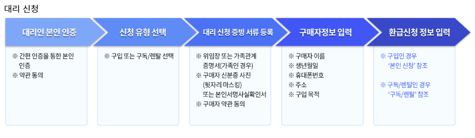 - 대리 신청 : 본인이 직접 신청하지 못하는 경우 대리인에게 위임하여 환급 신청