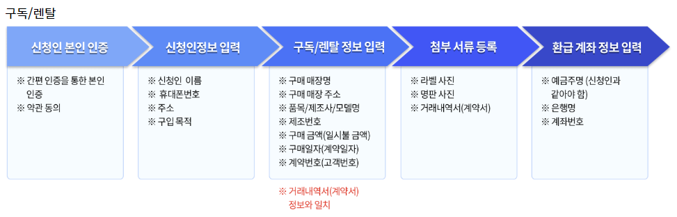 - 구독/렌탈 : 구독/렌탈 계약자 본인이 직접 환급 신청
