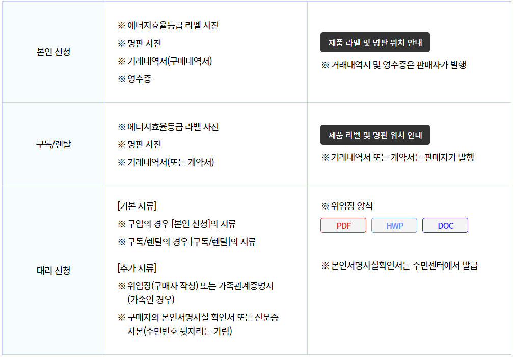 - 등급 : 에너지효율등급 라벨에서 '등급'(1등급) 및 '적용기준 시행일' 확인