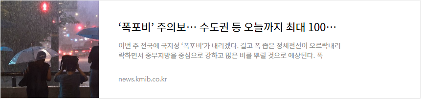 오늘 하루 다들 잘 보내시고 내일부터 좀 더 많이 내리는 비에 조심 또 조심과 준비를 하셔서 이번주 잘 지내시기를 바라봅니다.