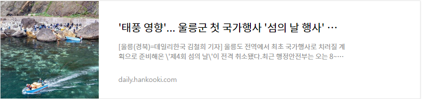 이 뉴스를 접하면서 이전에 들었던 울릉도 주민의 이야기가 생각이 나는데요 일기예보 방송에서 '태풍이 동해상으로 빠져나갔습니다' 그래서 '대한민국의 영향권에서 벗어났다'라는 말을 들을 때 울릉도는 대한민국이 아닌가? 하는 속상함이 있었다는 내용입니다.