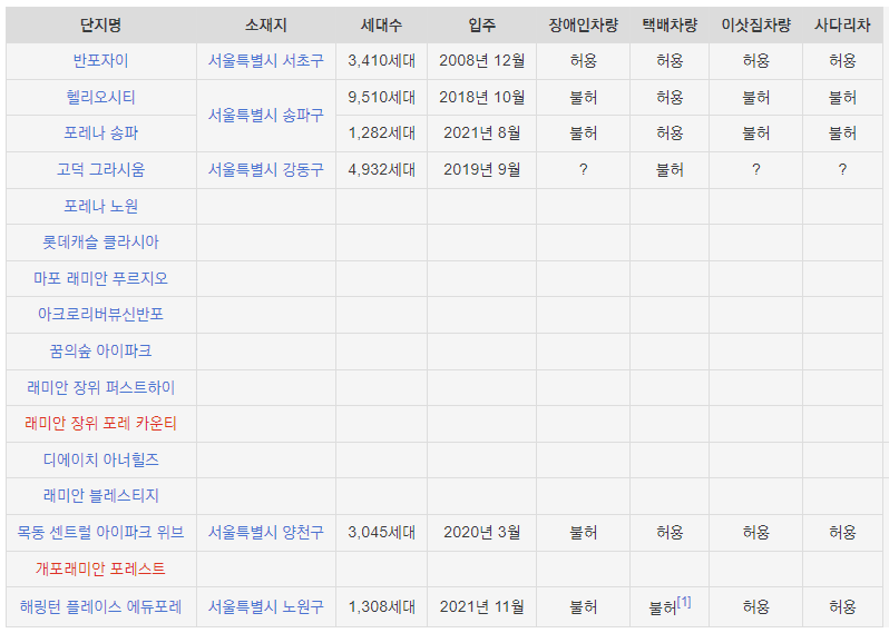 모든 아파트 단지가 나온 것은 아니지만, 그래서 이런 자료가 있다는 것이 신기하기도 했고 제가 찾은 나무위키의 경우는 일반 사용자가 정보를 수정할 수 있게 되어 있어 정확하다고 할 수는 없지만 그래도 있다는 것에 의미를 두고 공유해 보겠습니다.