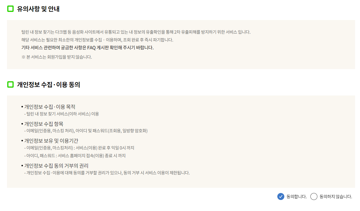 털린 내 정보 찾기 서비스 이용하기