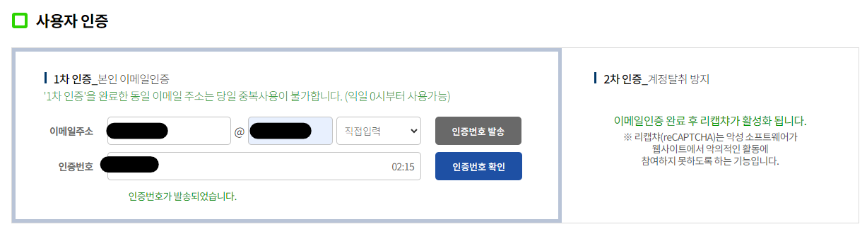 ▶ 개인정보 수집.이용 동의를 이메일 인증을 통해서 실행
