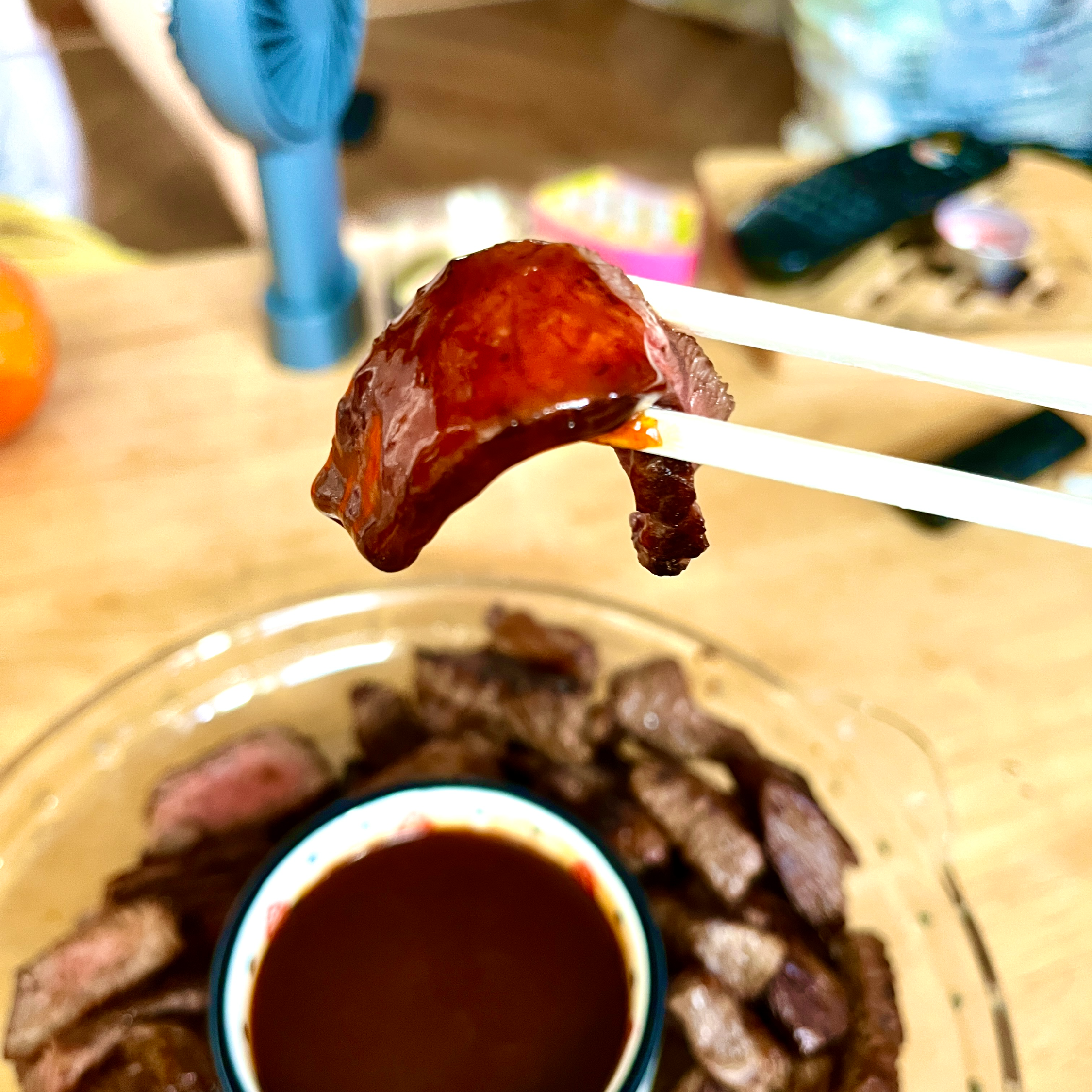 장조림 만들면 정말 맛있을 듯 한 그런 모습을 가진 고기로 토요일 오늘 아침은 구워봤습니다.