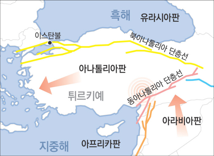 더구나 튀르키예의 대부분을 차지하는 아나톨리아판의 경우는 위로 올라오는 아프리카판, 아라비아판과 버티고 있는 커다란 유라시아판에 밀려 서쪽으로 이동하고 있는 모양새이기 때문에 이번 발생한 지진으로 인한 여진이 몇 개월은 갈 것이라는 분석이 나오고 있습니다.