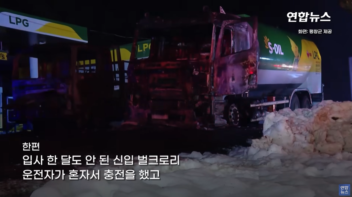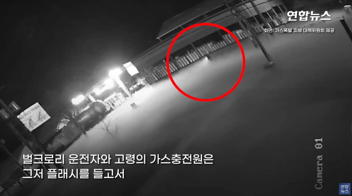 사건은 영상으로 확인 시 사건 당일 1월 1일 오후 8시 15분쯤 LGP 탱크롤리 차가 충전소로 들어갑니다.