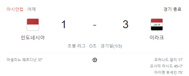 신태용 감독이 이끄는 인도네시아는 아쉽게도 이라크에 1:3으로 패하면서 D조 꼴찌를 하였는데요 경기 내용을 보면 이라크에게 전혀 뒤지지 않는 경기였다고 저는 생각합니다.