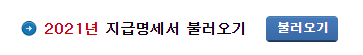 보시면 2021년 지급명세 불러오기 버튼이 있는데 그 기능을 실행하시고 신용카드자료 불러오기를 버튼을 실행하시면 10월 전까지 사용한 신용카드 자료가 자동으로 각 항목에 채워집니다.