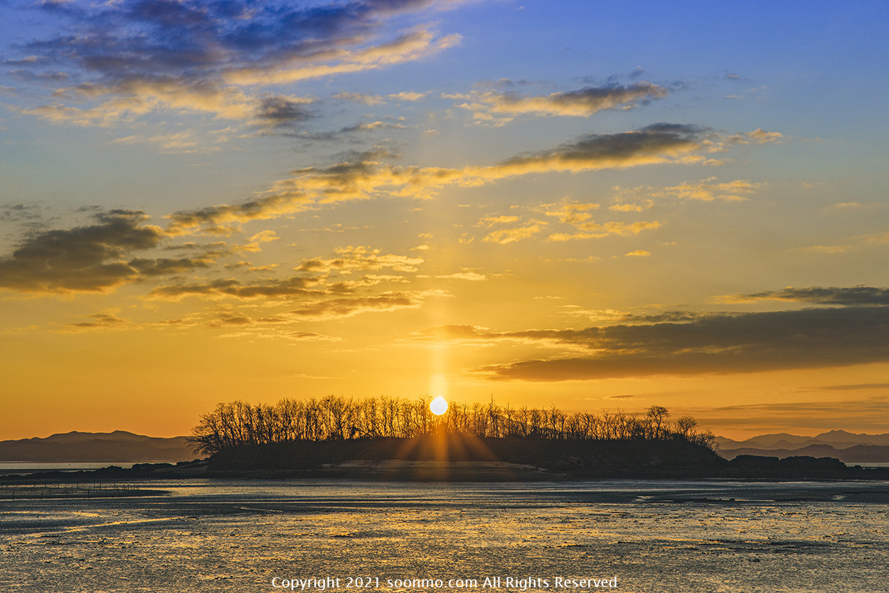 솔섬 위로 떠오르는 해돋이가 장관입니다.