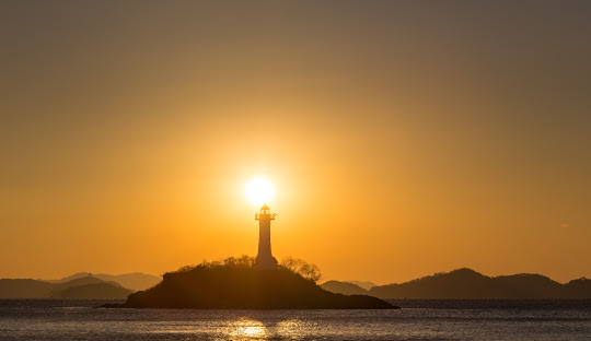 등대 뒤로 해가 떠오르는 모습이 특히 아름답습니다.
