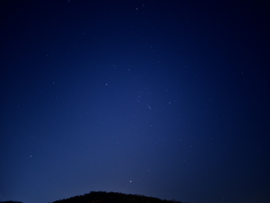 이렇게 늦은 저녁 담은 사진을 집에 들어와 확인을 하고 사진을 정리하던 중 오리온자리 하늘만 계속 담다가 마지막에 담은 이 사진 한 장에 저를 놀라게 하는 사건이 하나 있었습니다.