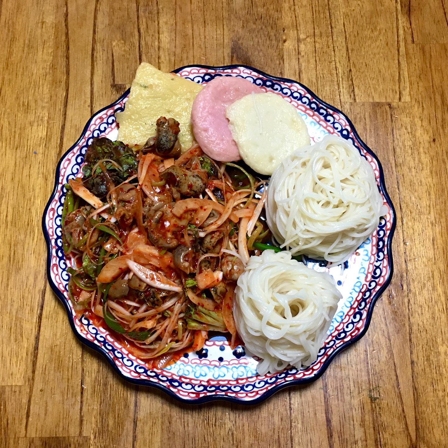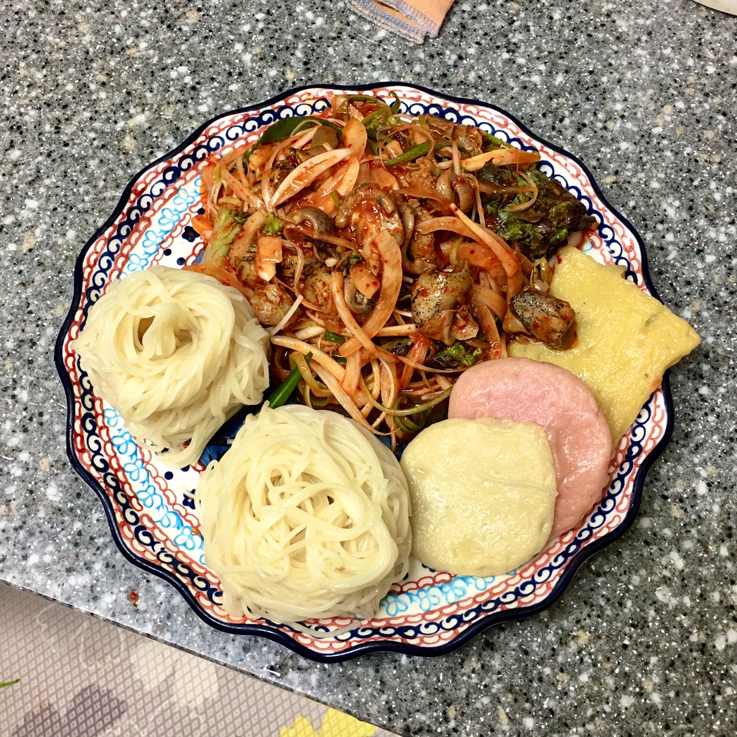 오늘은 그릇을 두 개 사용하였고요, 그리고 집에 있는 소면까지 삶아서 넓은 접시에 플레이팅까지 제대로 하여 만들어 먹었습니다.