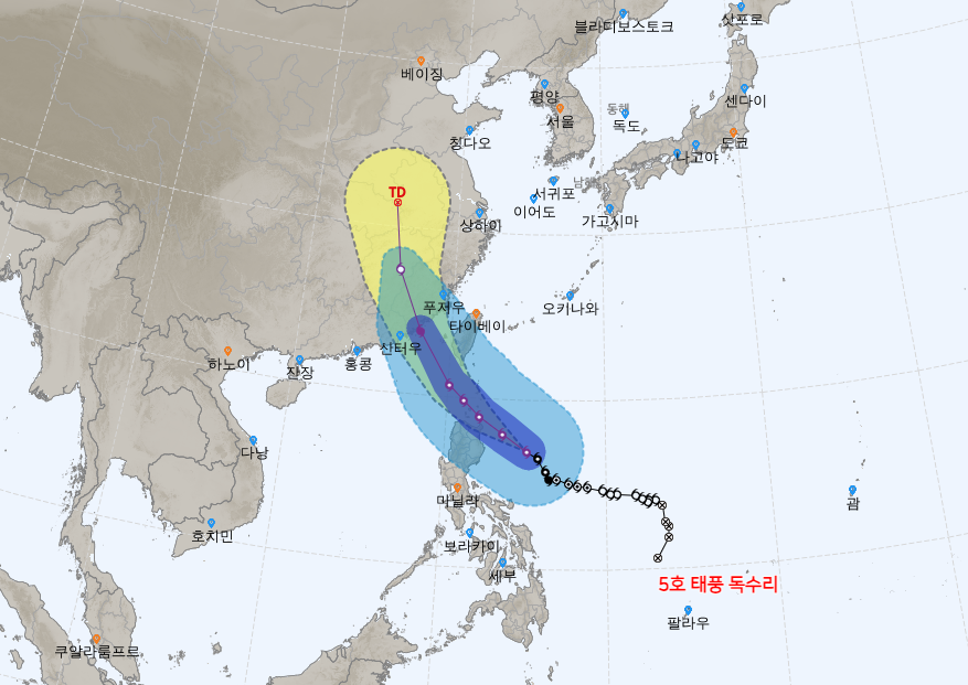 독수리 왠지 바람이 날카로울 듯하고 비도 상당해 보일듯한 느낌을 가지는 태풍 독수리는 필리핀 마닐라 앞바다에서 그 세력을 떨치고 있고 대만을 향해 이동을 할 것으로 예상하고 있습니다.