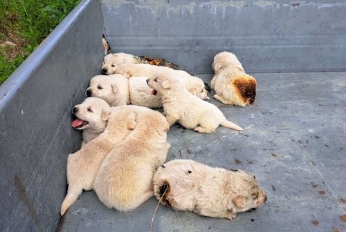 그렇게 진화에 나서는 도중 건물 주변에서 강아지 낑낑대는 소리가 들렸고, 횡성 소방서 신우교(52) 현장대응단장과 공근구급대 이상훈 반장은 강아지 소리가 나는 곳을 찾기 시작했고 다행히도 화마 속에서 웅크리고 있는 새끼 10마리를 극적으로 구조하게 되었습니다.