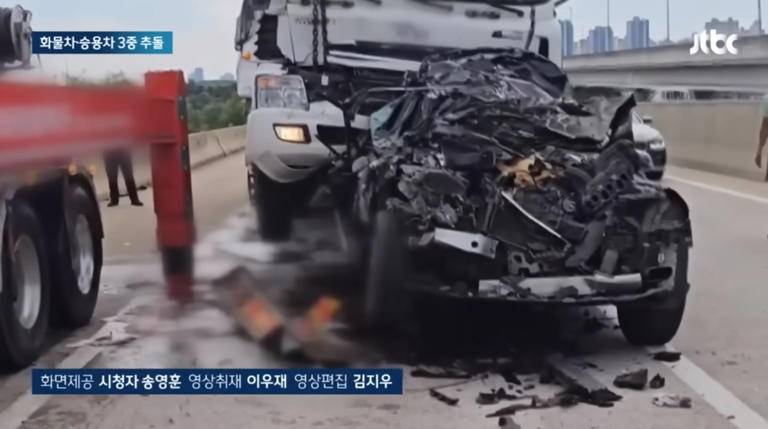 하지만 화물차 사이에 낀 70대 승용차 운전자는 가벼운 부상을 입고 걸어 나왔고, 뒤에서 추돌 한 화물차 운전자는 심정지 상태로 병원에 이송되었지만 사망하였습니다.
