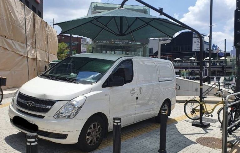 그도 그럴 것이 위에 희색 투산은 위에서 이야기한 것처럼 빨간색 건물 가게 중 한 곳의 사람이 소유주로 계속 저기에 있다는 것인데, 여름 그늘막을 치면 계속해서 저렇게 주차를 한다는 이야기가 되며, 신고를 해도 거리낌 없이 행동을 하는 것으로 보이기 때문입니다.