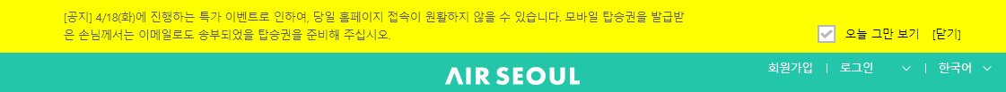 에어서울 홈페이지에 들어가더니 공지로도 올라왔습니다.