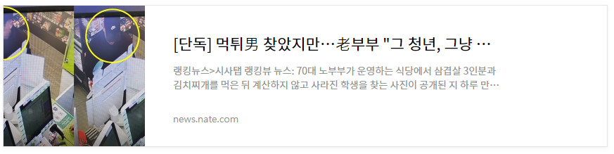 밥을 먹고 그냥 나가는 행동이 잘 못된 것이라 보통의 사람이라면 분명 갈등도 하고, 정말 돈이 없어 그랬다면 자연스러운 행동은 나오지 않을 것인데 제가 봐도 그런 모습이 나옵니다.