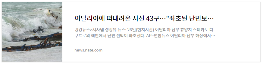 이탈리아 남부 해상에 난민들이 탄 선박이 좌초되면서 선박에 타고 있던 난민 43명이 사망했다고 로이터.AP 통신이 보도했습니다.