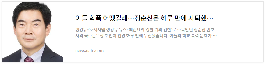 국수본부장 임명된 정순신!(이름이 같아서 기분 나쁘네ㅠㅠ) 아들의 학폭으로 인해 사퇴를 했다는 기사가 요 며칠 계속 인터넷 기사에 도배되고 있습니다.