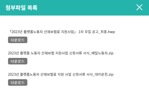 - 2023년 플랫폼노동자 산재보험료 지원 신청서(지원 대상자별)