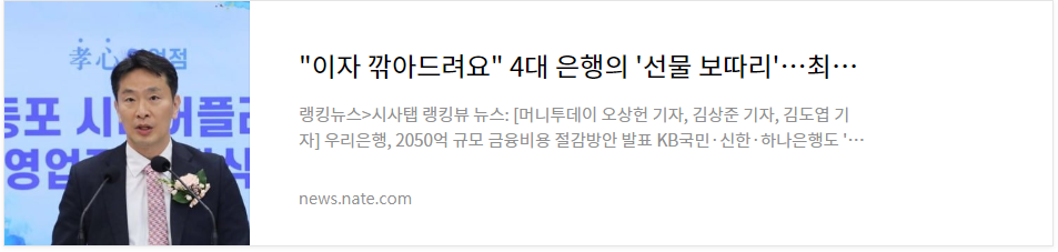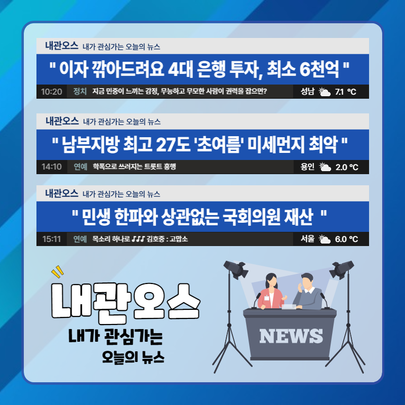 정부가 금융의 공공성과 상생 금융 확대를 당부한 뒤 4대 은행(금융그룹)이 이자 등 고객의 금융 비용을 6,000억 원 이상 줄여주는 내용을 발표하였습니다.