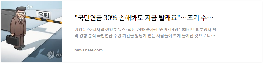 그런데, 저는 이 뉴스를 보면서 문득 들었던 생각은 조기 수령을 택하는 사람들이 많이 있다는 것이었습니다.