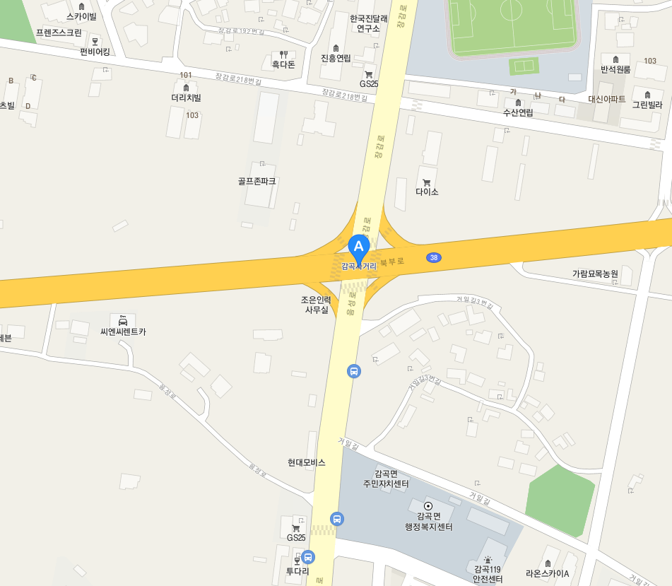 사고가 발생한 지역은 음성의 감곡네거리로 아래 지도를 보시면 정확한 십자가는 아니더라도 인도를 덮칠만한 각이 나오지 않을 것 같이 생겼는데, 어떻게 운전을 했기에 그런 건지 참으로 이상했습니다.