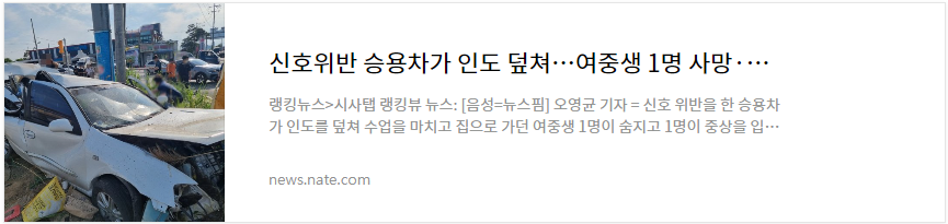 신호 위반을 한 승용차가 인도를 덮치는 사고가 났고 수업을 끝내고 집으로 가던 여중생 두 명이 한 명은 숨지고 또한 명은 중태에 의식을 찾지 못하는 사고가 발생했습니다.