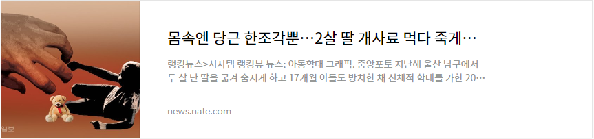 기사의 내용에 의하면, 지난해 울산 남구에서 두 살 난 딸을 굶겨 숨지게 하고 17개월 아들도 방치한 채 신체적 학대를 가한 20대 친모와 계부가 대법원에서 징역 30년형을 집행받았다고 합니다.